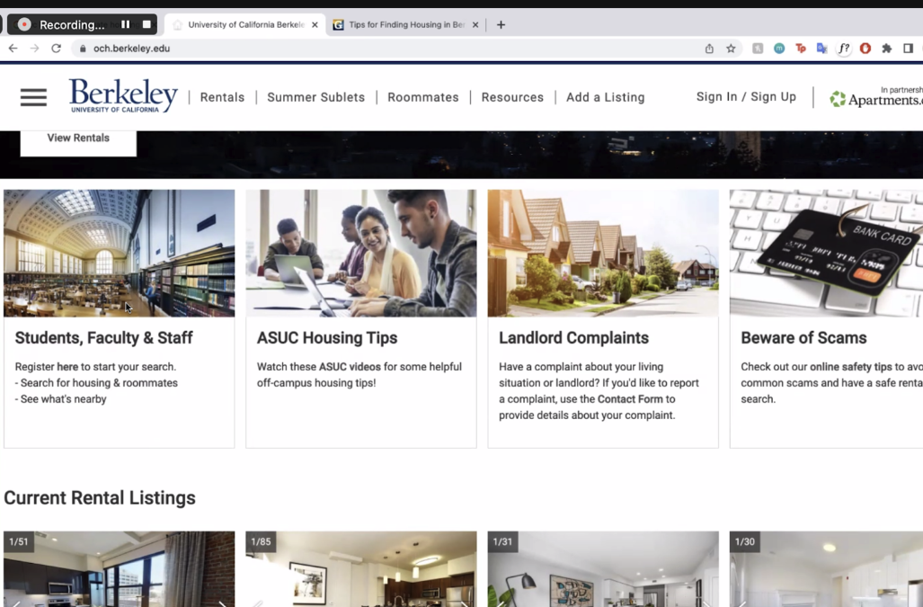 Fig 1: A participant was exploring the Cal Rental site and felt discouraged from further exploration due to having to register/sign in to use the site. Signals an opportunity to consider potential barriers to entry.